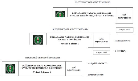 - SOŠ AQAP 2110/Z1 POŽIADAVKY NATO NA OVEROVANIE KVALITY PRI NÁVRHU, VÝVOJI A VÝROBE Vydanie 2, Zmena 1,