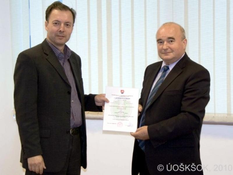 Odovzdávanie certifikátu spoločnosti TECHNISERV, spol. s r.o.