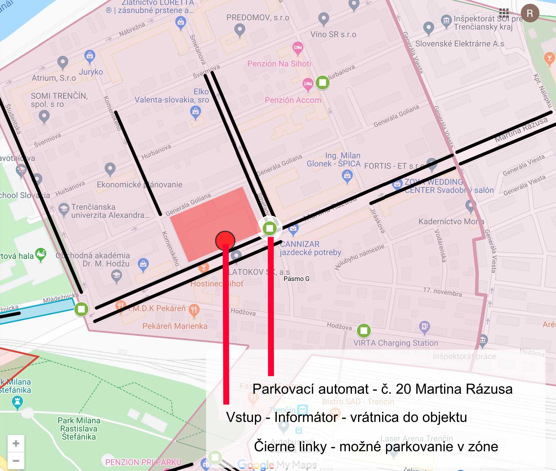 Parkovanie v Trenčíne, časť SIHOŤ (pri úrade) PÁSMO "G" : viď SCHÉMA PARKOVANIA